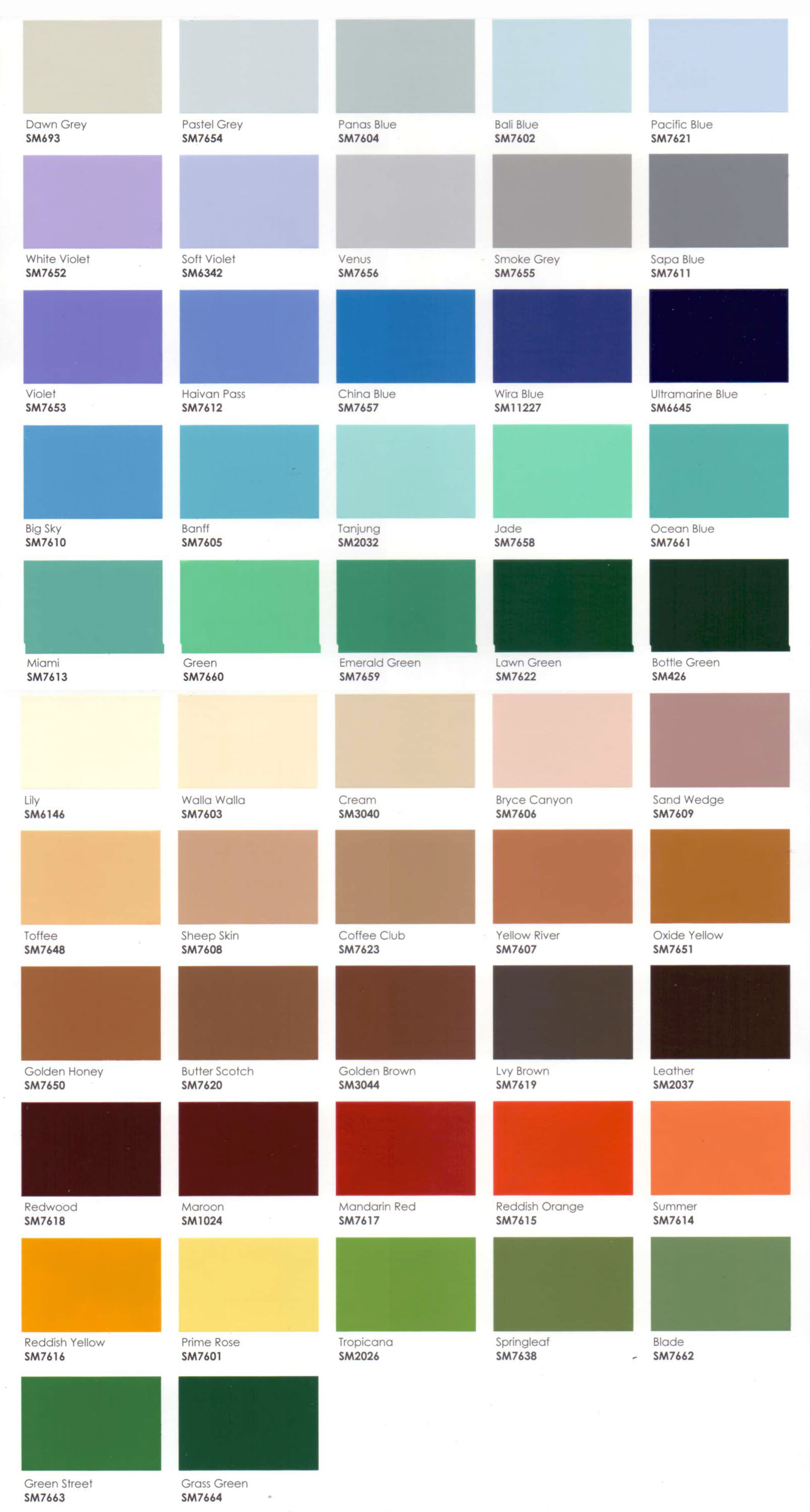 Bảng màu sơn nước nội thất Seamaster 7200 – 7300