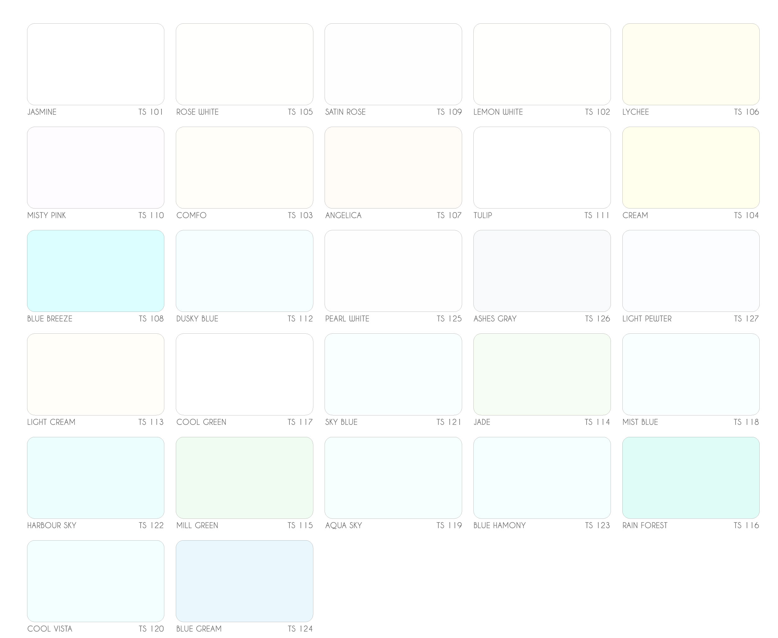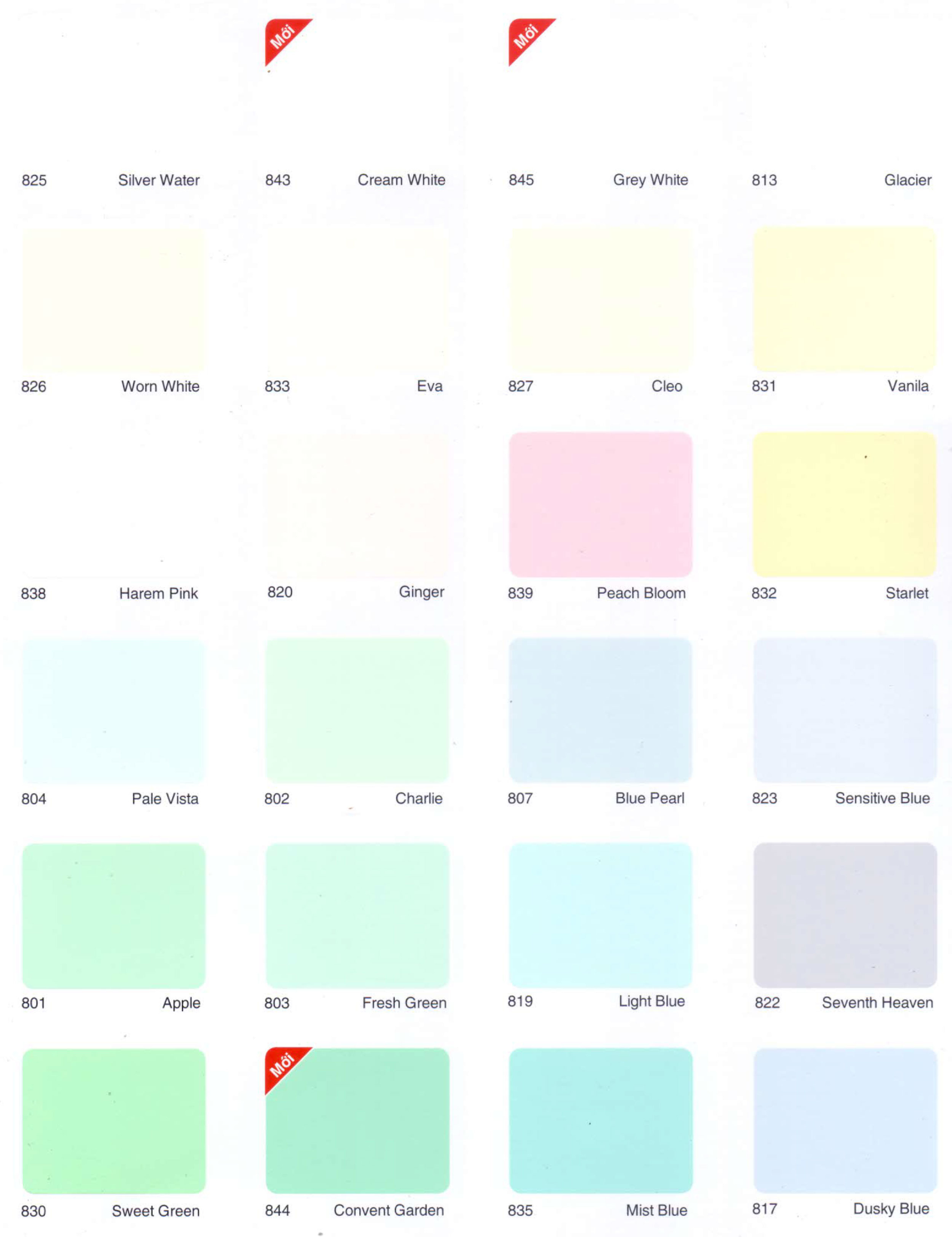 Bảng màu sơn nước nội thất Tison Unilic Silk