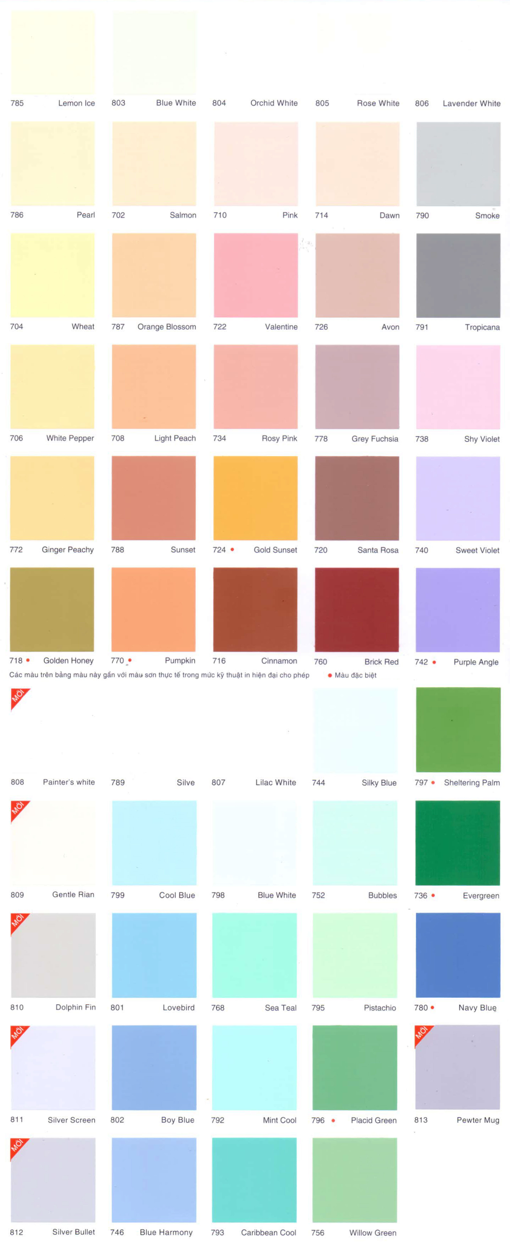 Bảng màu sơn nước ngoại thất Tison Satin Coat