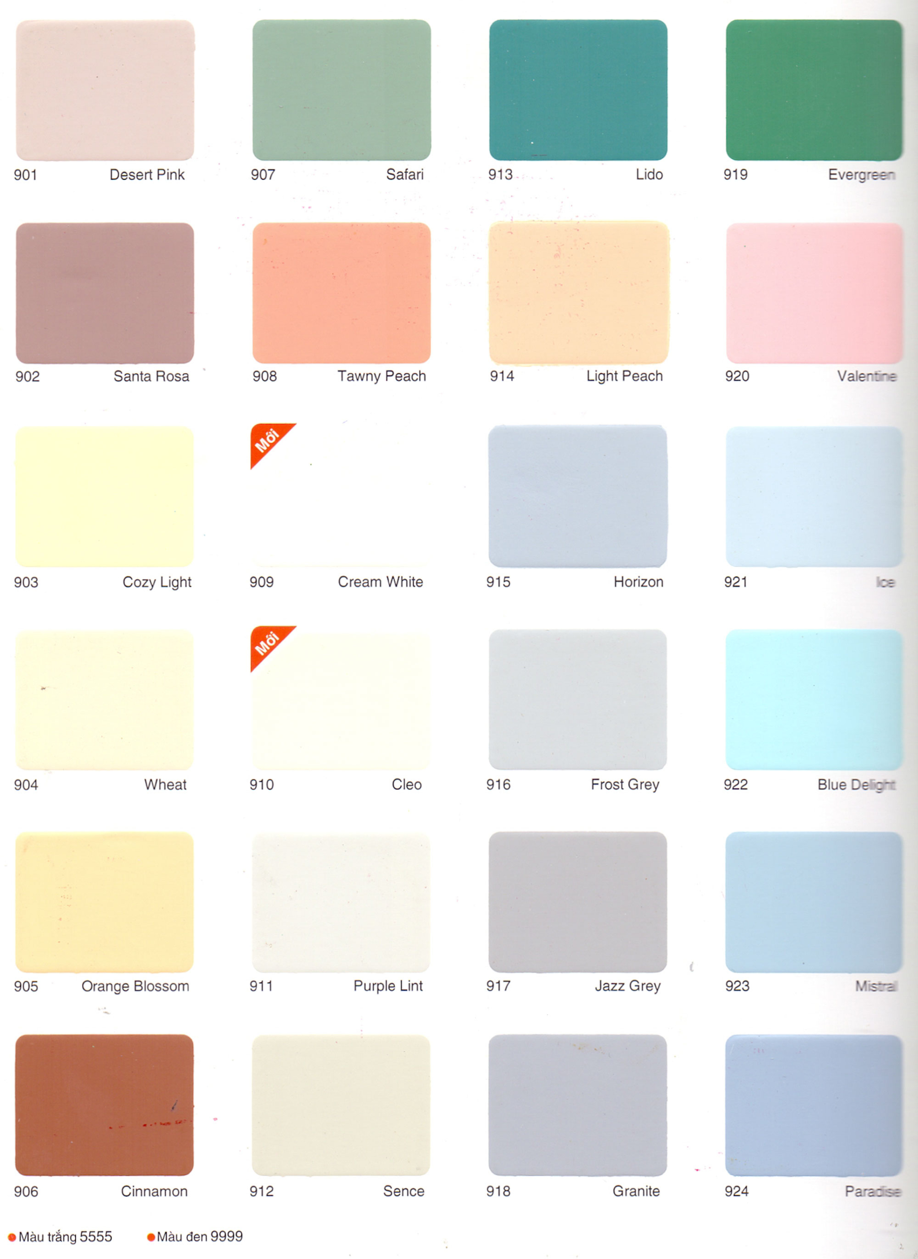 Bảng màu sơn nước ngoại thất Tison Super Coat Pro