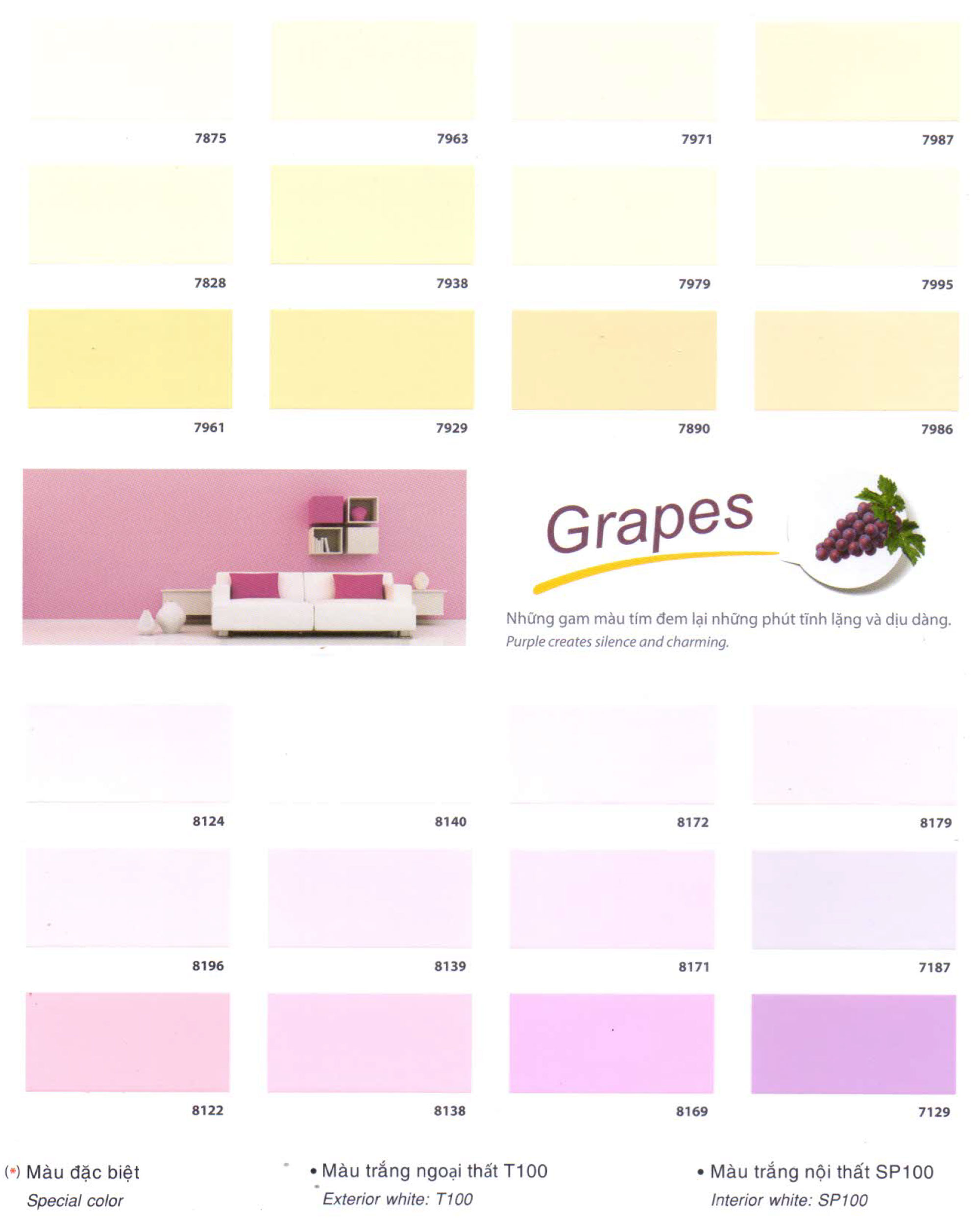 Bảng màu sơn nước nội thất và ngoại thất Toa Nano Shield – Nano Clean
