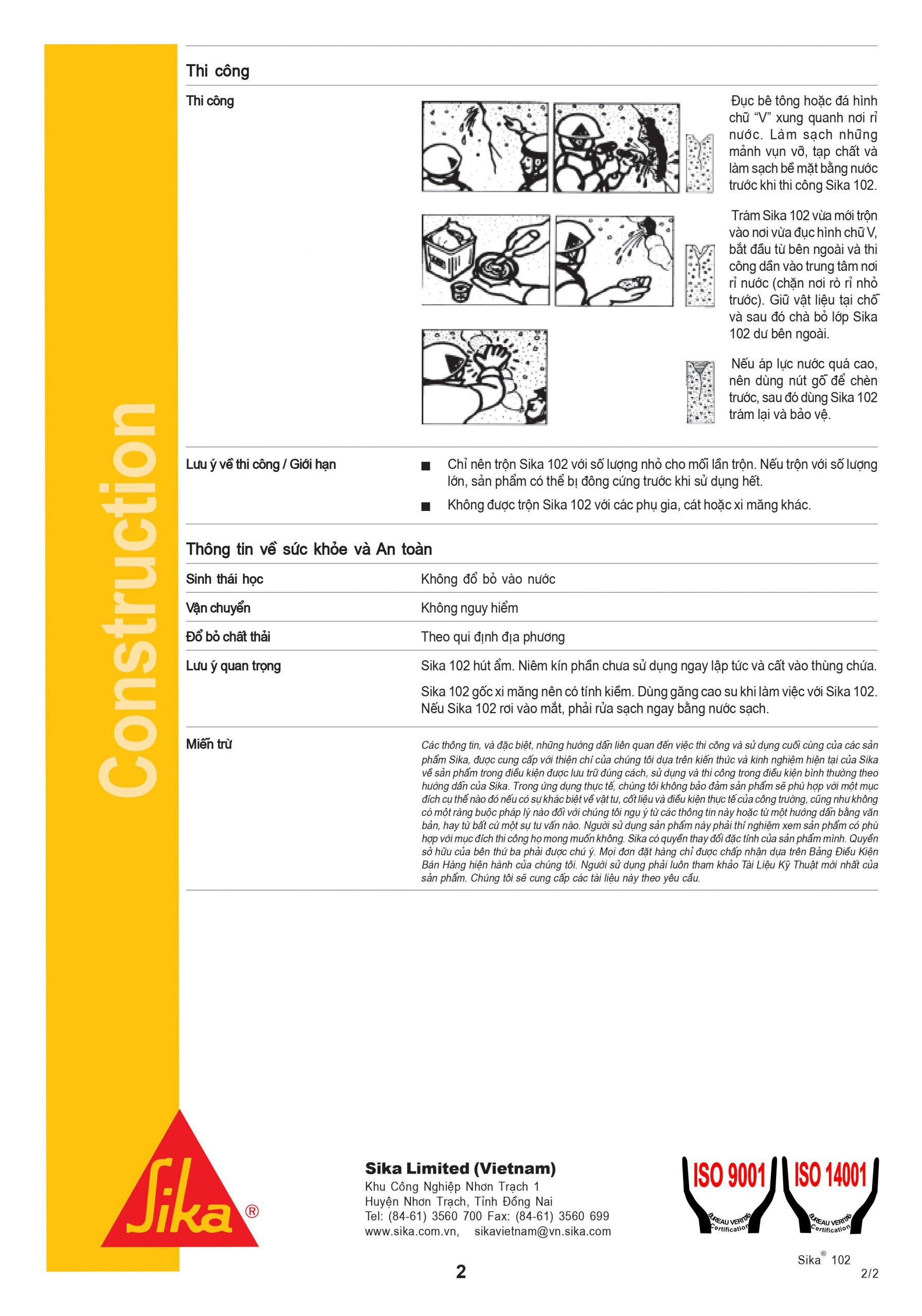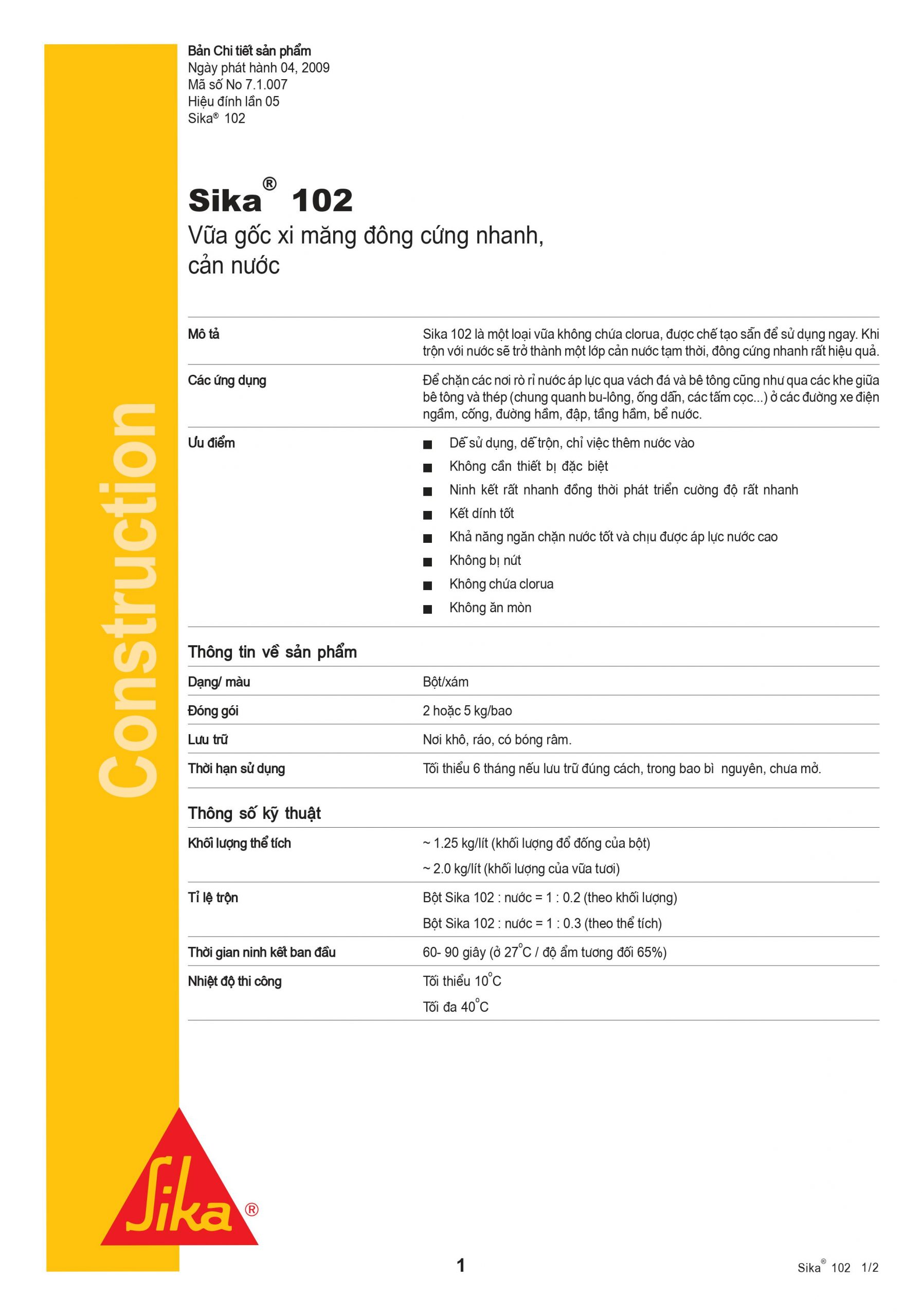 1. Mô tả & Ứng dụng Sika® Plug CN là một loại vữa không chứa ...