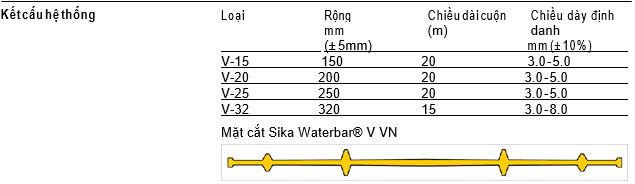 Sika Waterbar® V VN được chế tạo từ PVC chịu nhiệt, đàn hồi. Sản phẩm được thiết kế để chặn nước thấm qua mạch ngừng trong kết cấu bê tông.