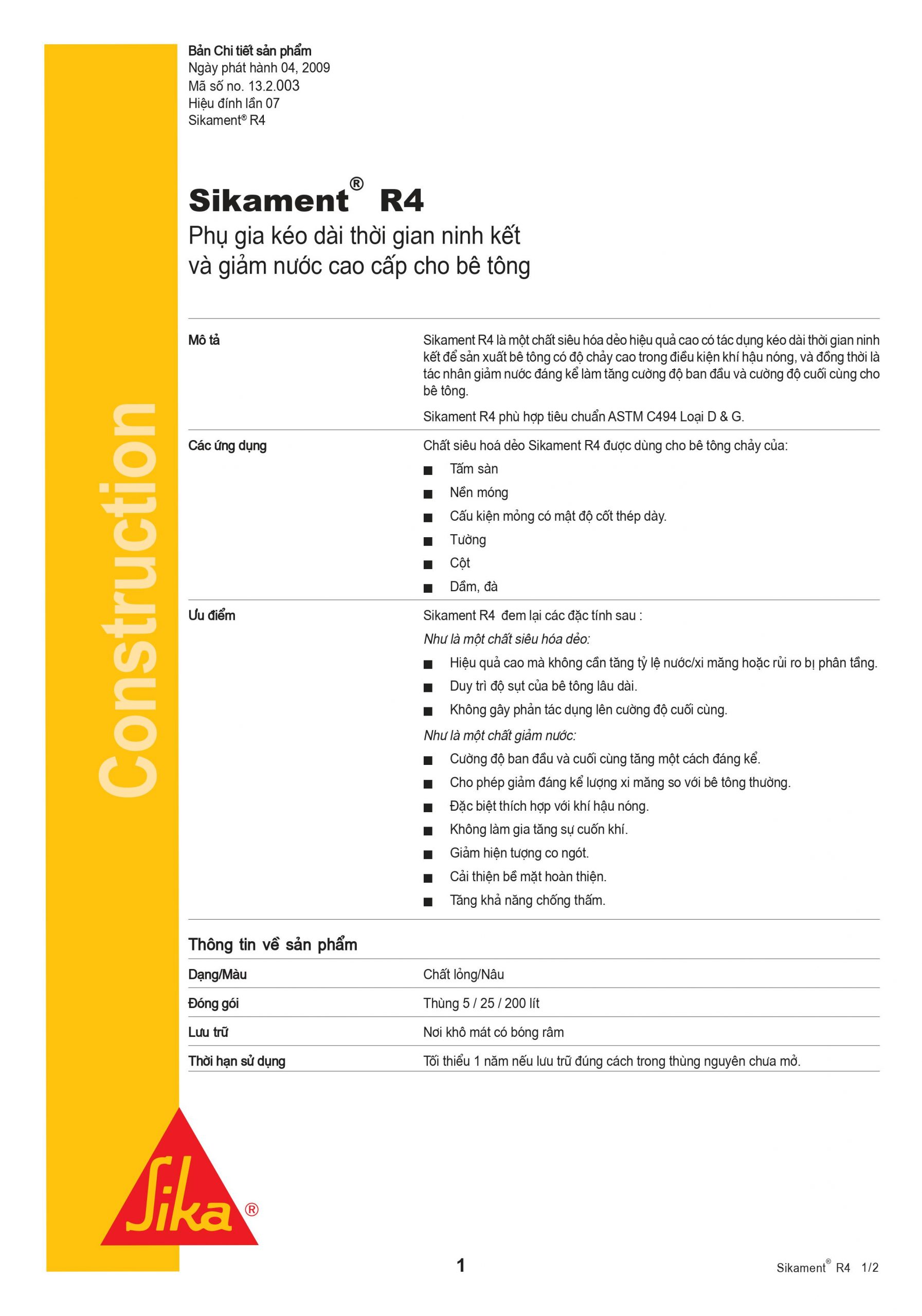 1. Mô tả & Ứng dụng Sika® Plug CN là một loại vữa không chứa ...