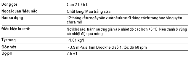 Định mức 0.2–0.3 lit/m² cho một lớp tùy thuộc vào độ rỗng của mặt nền.