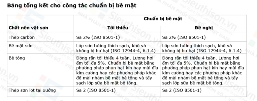 - Lớp trước: epoxy, epoxy kẽm, kẽm vô cơ silicate polyurethane