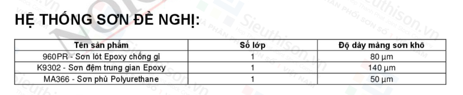 - Tỷ lệ phủ có thể thay đổi tùy thuộc điều kiện bề mặt, môi trường, độ dày màng sơn, phương pháp sơn