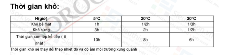 - Độ dày màng sơn có thể thay đổi tùy thuộc vào điều kiện bề mặt, môi trường và phương pháp thi công.
