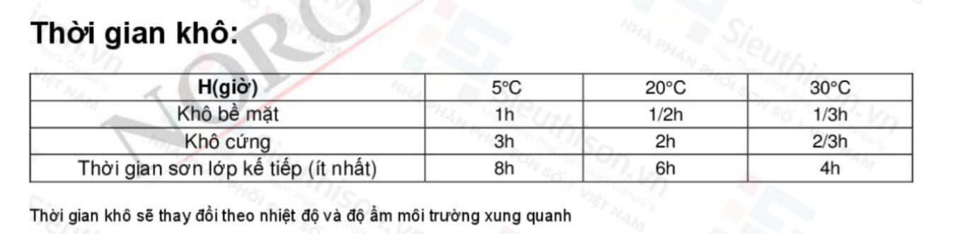 - Độ dày màng sơn có thể thay đổi tùy thuộc vào điều kiện bề mặt, môi trường và phương pháp thi công.