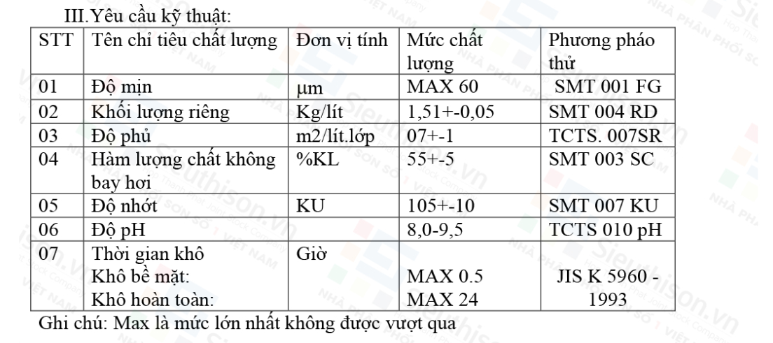 – Khô bề mặt: 30 phút Sơn lớp kế tiếp: 2 – 3 giờ