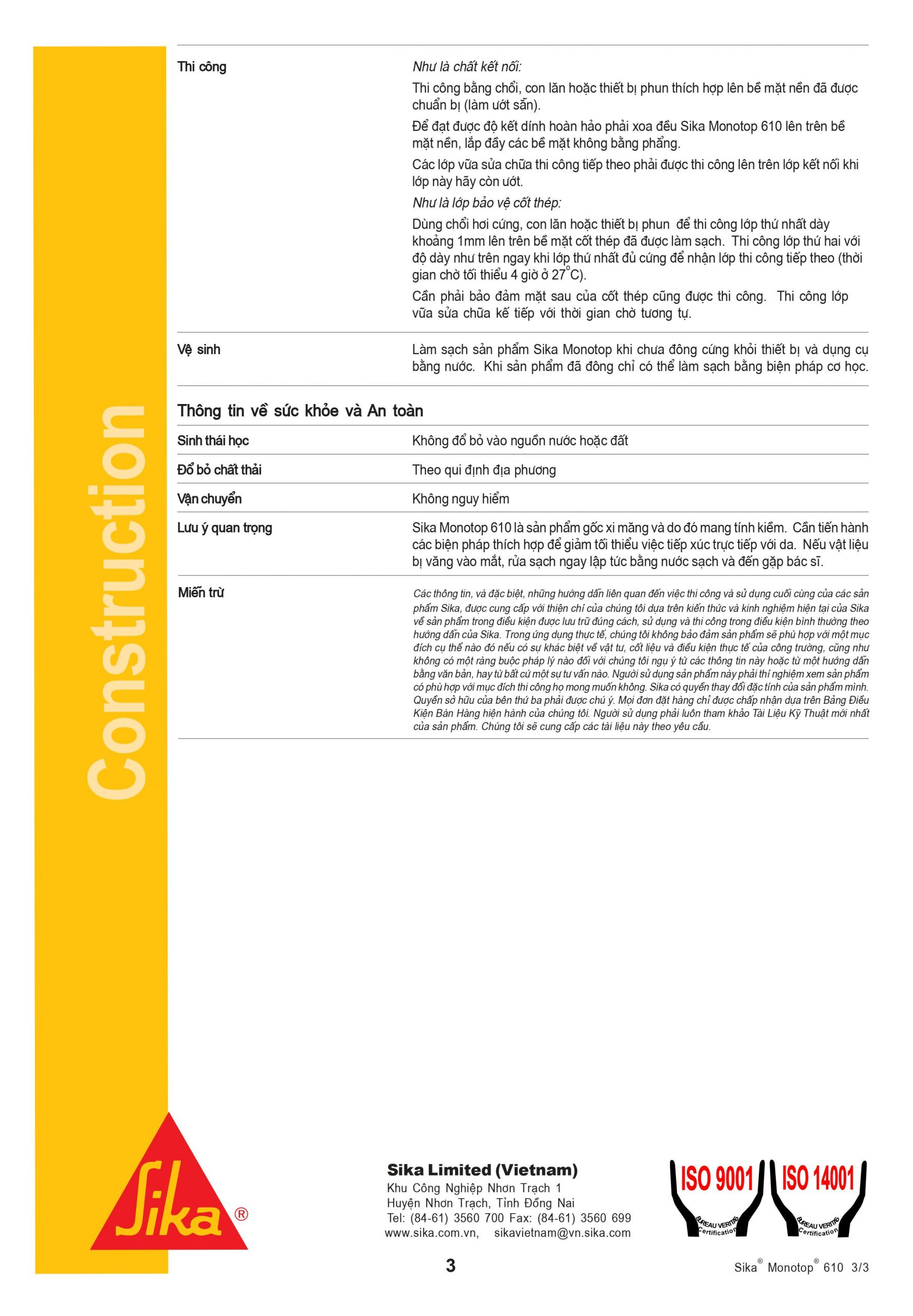 1. Mô tả & Ứng dụng SikaLatex® TH là phụ gia loại nhũ tương Styrene ...