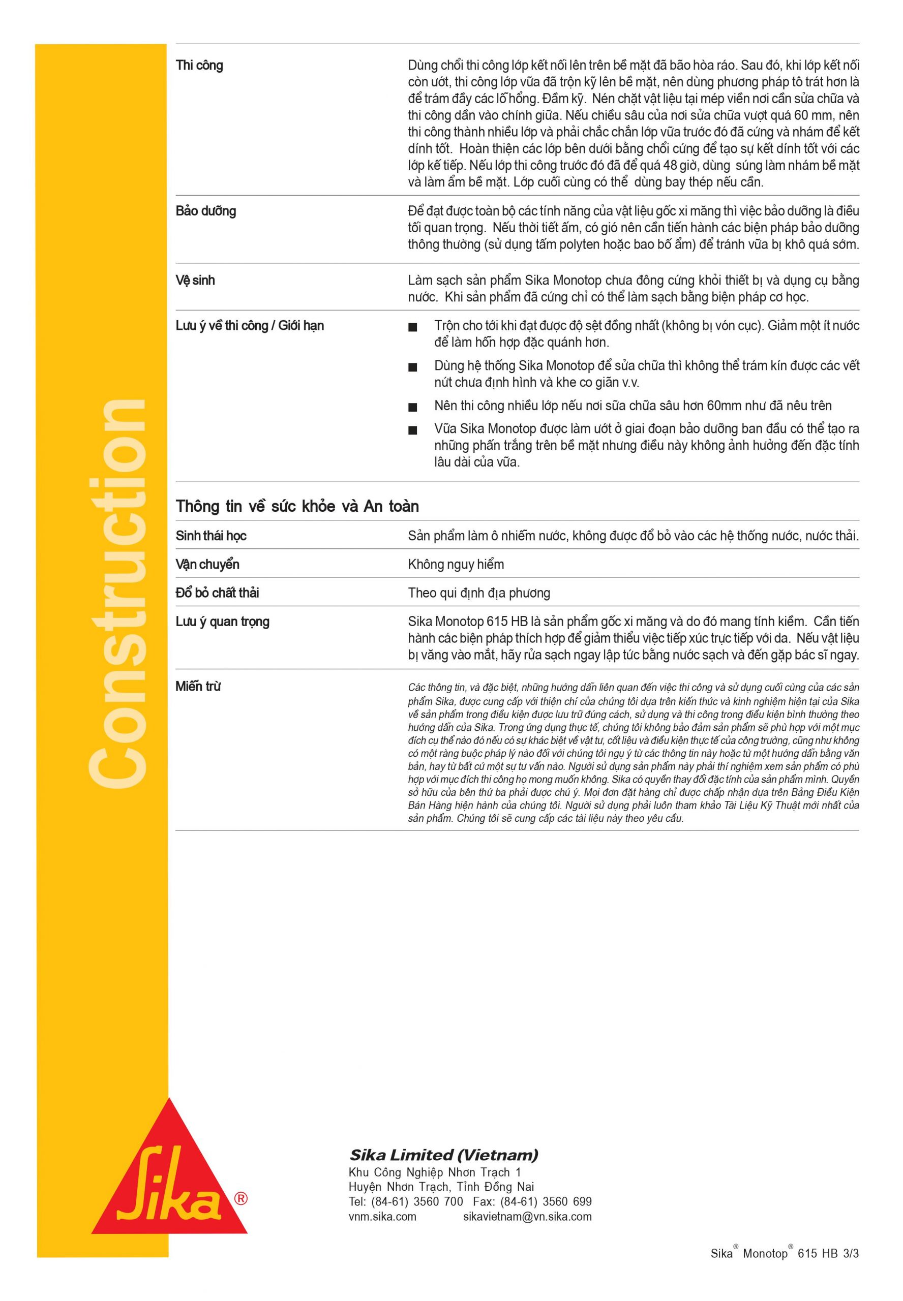 1. Mô tả & Ứng dụng SikaLatex® TH là phụ gia loại nhũ tương Styrene ...