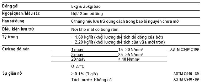 Nhiệt độ thi công tối thiểu là 10 °C. Nếu nhiệt độ thi công thấp hơn 20 °C thời gian ninh kết và cường độ đạt được sẽ chậm hơn.