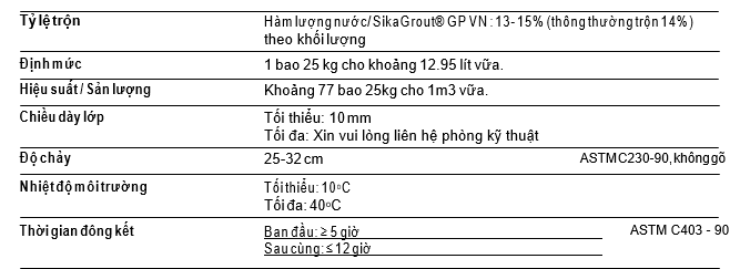 Tùy thuộc vào thể tích cần được lấp và độ dày của khoảng hở, có thể thêm cốt liệu lớn vào vữa lỏng SikaGrout® GP VN với tỉ lệ 50-100% khối lượng của bột SikaGrout® GP VN. Các cốt liệu tròn thích hợp hơn cốt liệu dẹt.