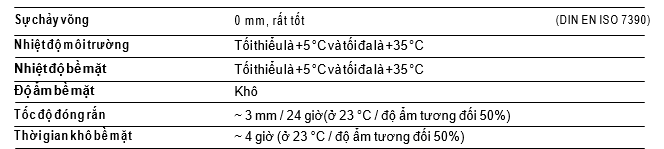 Tỷ trọng ~ 1.3 kg/l (màu xám bê tông)