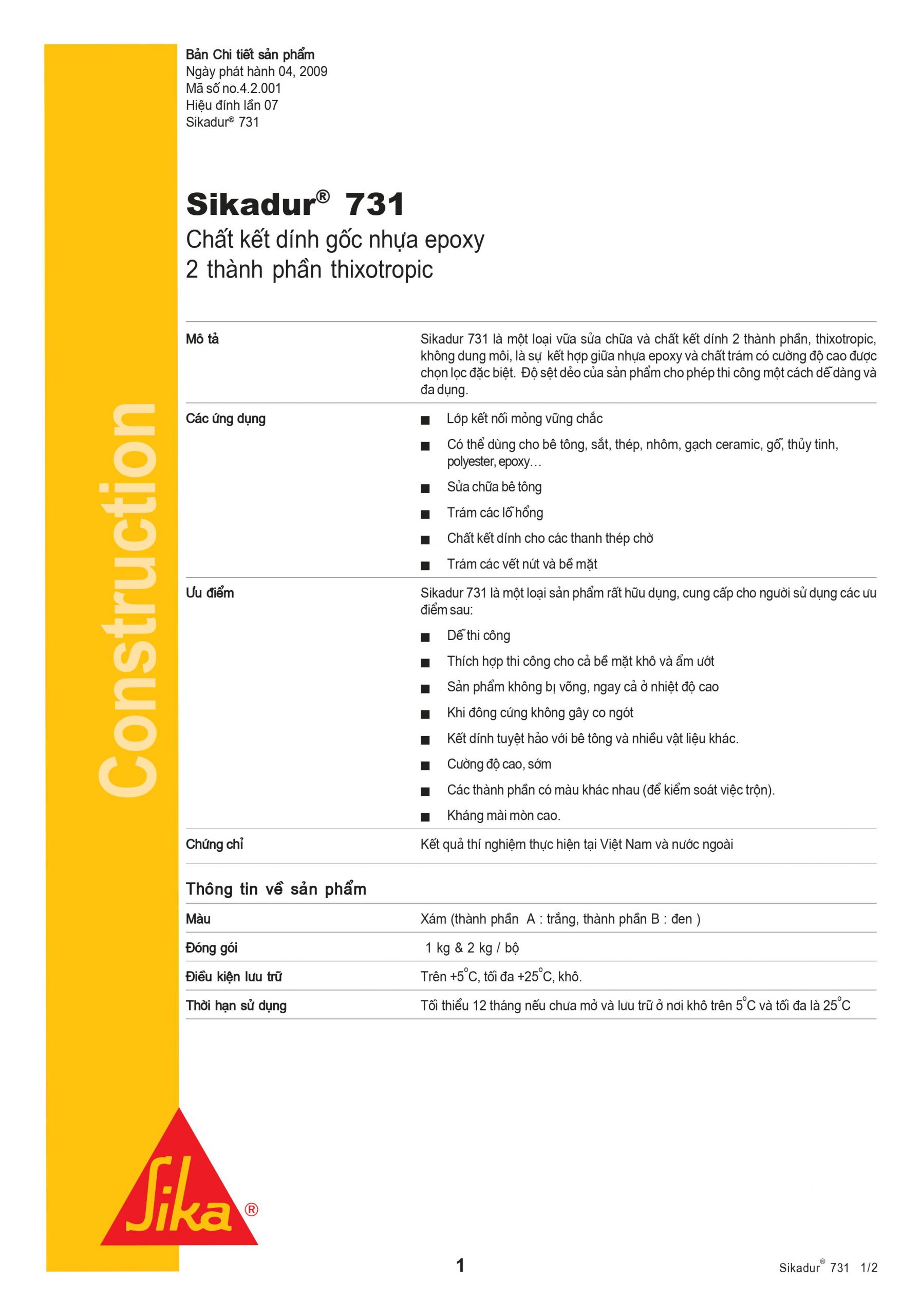 1. Mô tả & Ứng dụng Sikadur®-752 là keo gốc nhựa epoxy cường độ cao, ...